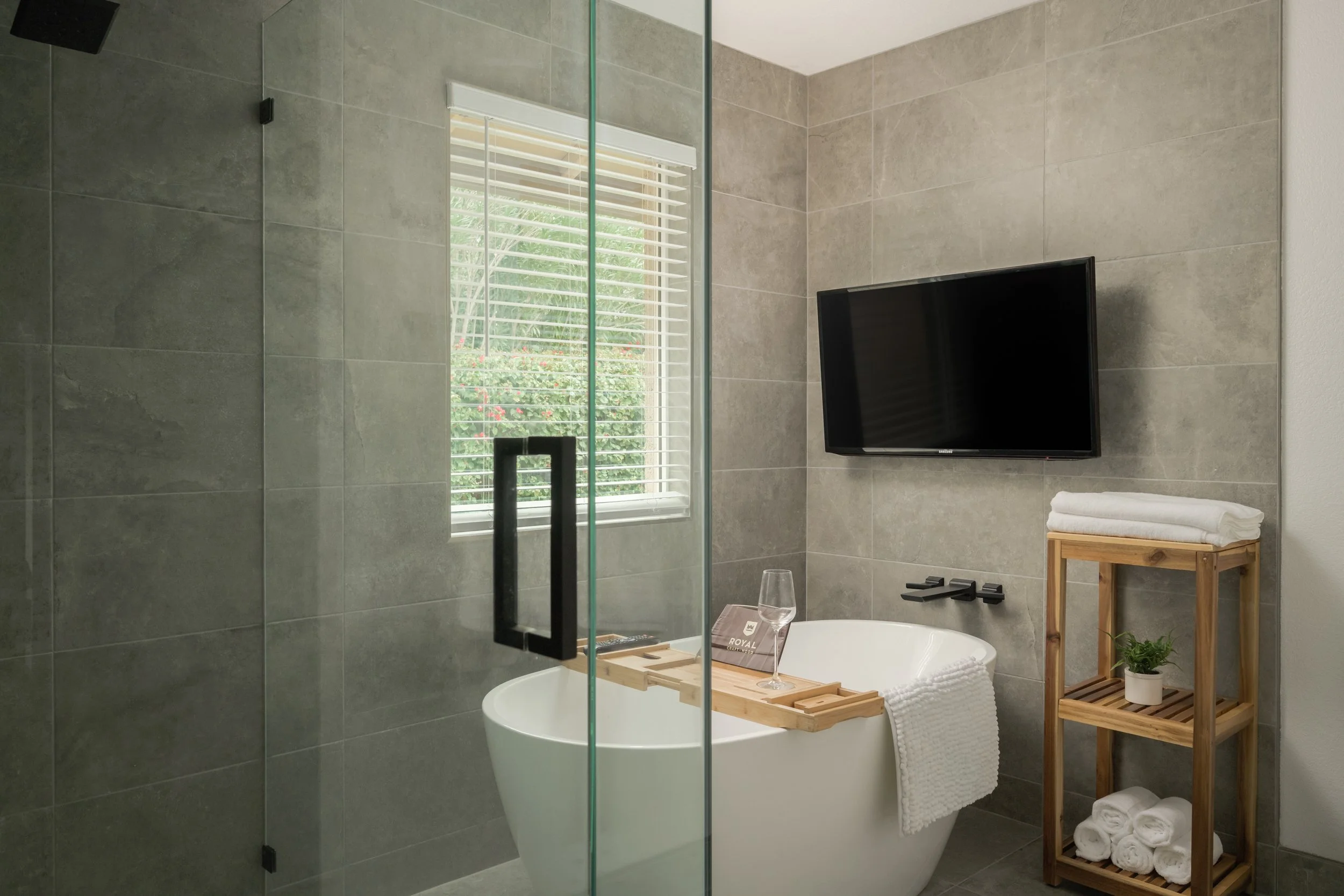 We installed large-format porcelain tile for a clean, high-end look, and added two custom feature walls—one in the dining room and one in the primary suite—to elevate the design.